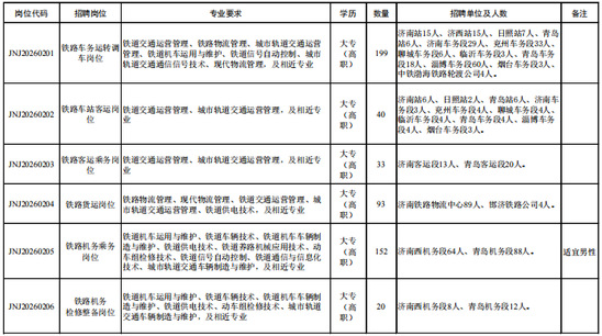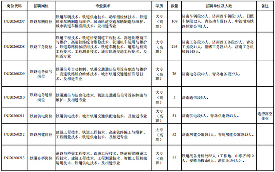 4.具备正常履行岗位职责的身体条件和心理素质,视力、听力、辨色力正常,身心健康。其中代码 JNJ20260205岗位要求身体条件符合《铁路机车车辆驾驶人员健康检查规范》规定的标准。