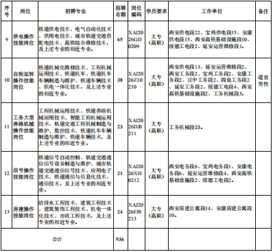 本次计划招聘936人,招聘岗位均为铁路运输生产一线操作技能岗位。招聘岗位、专业、工作地点及人数等内容详见附件。
