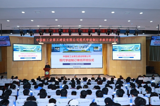 1月15日上午,学校与中国核工业第五建设公司现代学徒制订单班开班仪式在高新校区博爱厅举行。学校与中核五公司领导、企业导师、学校教师,以及电仪、管工、焊工、钳工四个订单班全体学生共同出席,见证了校企协同育人开启新篇章。