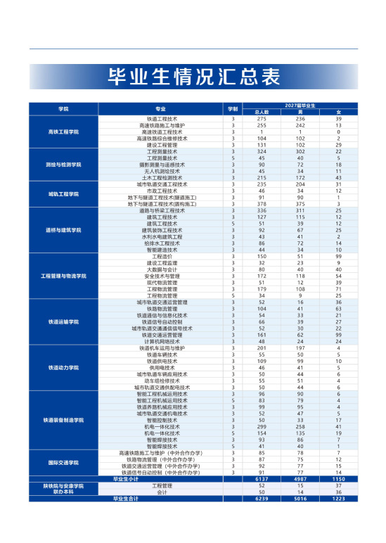 2027届毕业生(涵盖铁道工程技术等44个专业,6200余人,详见毕业生情况汇总表);