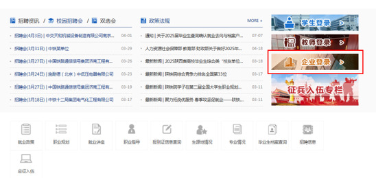 1.登录陕铁院就业创业网https://jyw.sxri.net/申请入驻或直接点击